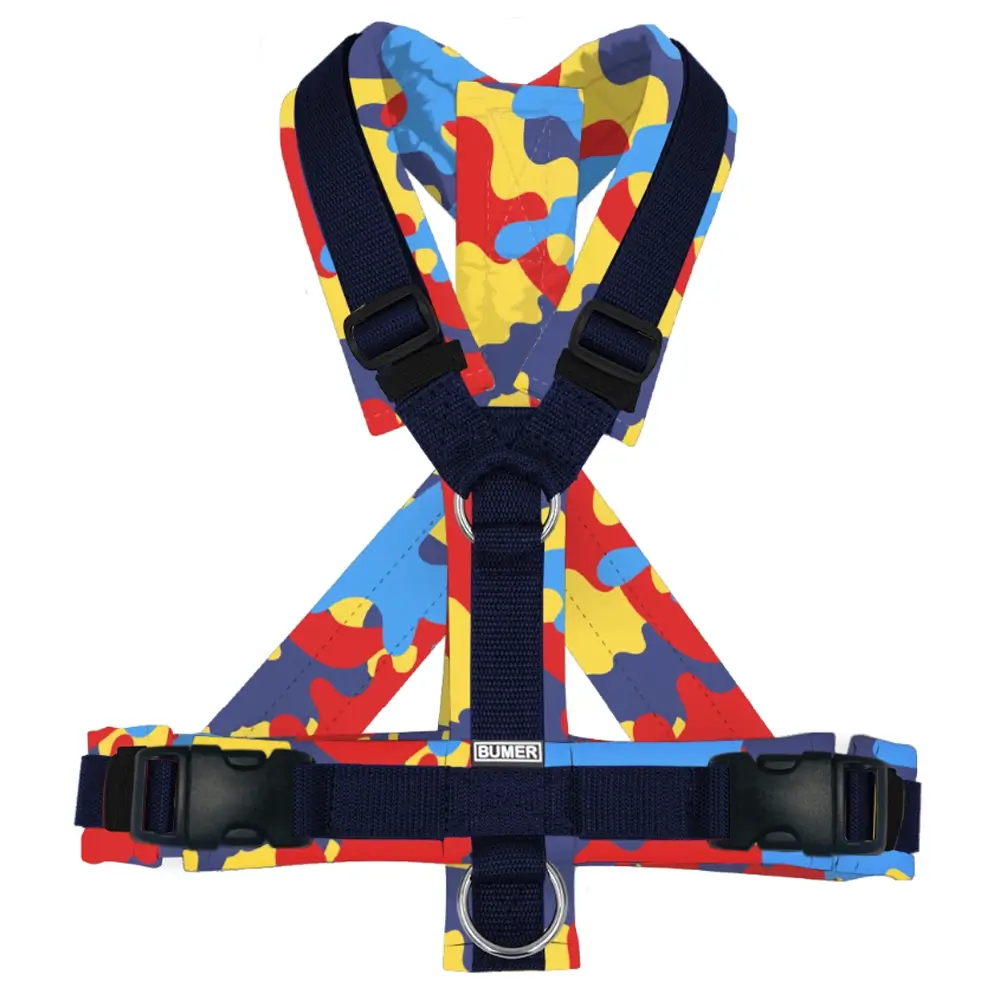 BUMER Hundegeschirr CAMOUFLAGE, gepolstert, (Softshell), komplett konfigurierbar. Konfiguriere dieses mit Softshell gepolsterte Hundegeschirr. Das gepolsterte Polyester-Material (SOFTSHELL) ist absolut hochwertig, Wasser- und Schmutzabweisend, schnell trocknend, isolierend, atmungsaktiv, strapazierfähig und dennoch ein Leichtgewicht. Die Farbe des Softshell-Materials kann ausgewählt werden. Ebenfalls stehen Gurtbandfarben zur Auswahl oder ein stabilisierender Bruststeg.