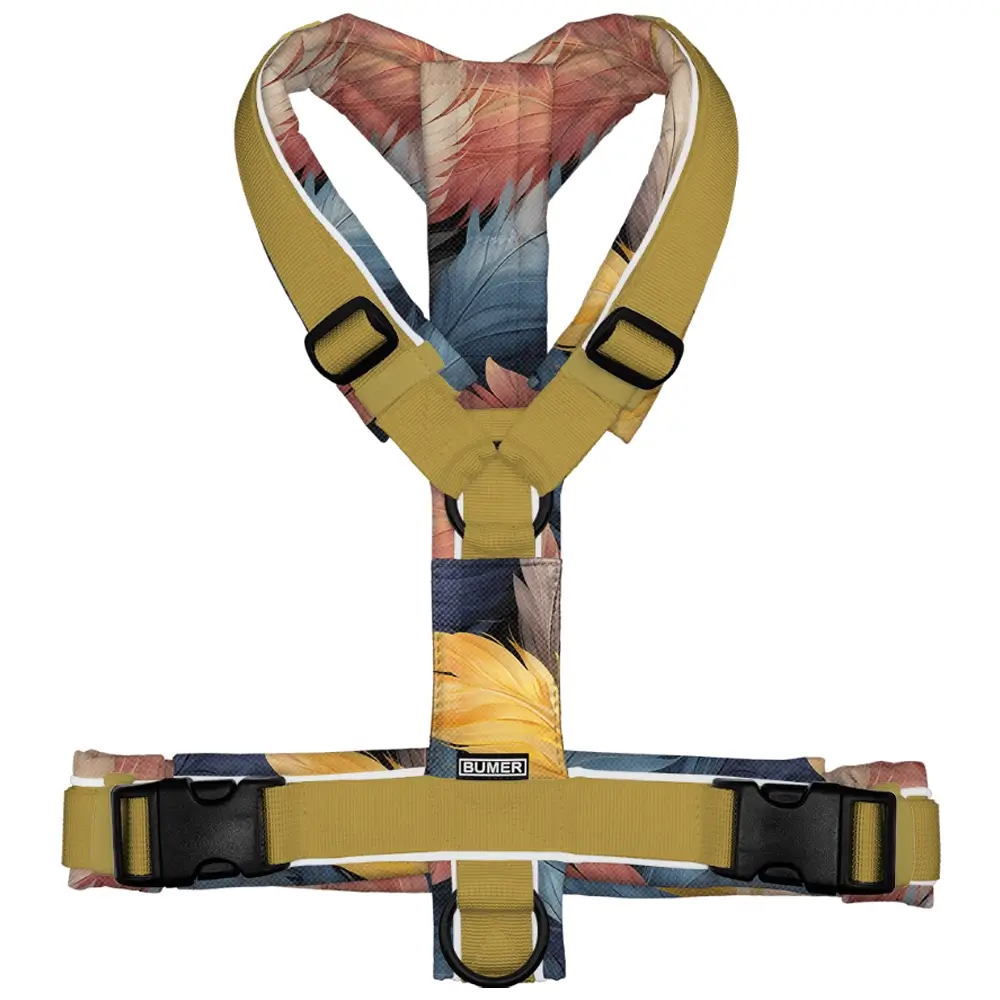 Gestalte jetzt dein individuelles Hundegeschirr mit deinem Lieblings-Federmotiv und bringe Leichtigkeit und Stil in euren Alltag!