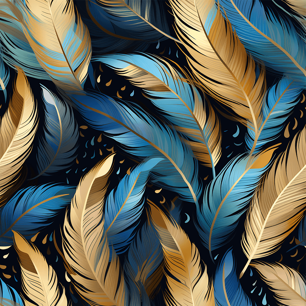 - “Himmelsfedern”: Ruhige Blau- und Goldtöne, inspiriert von der Natur.
