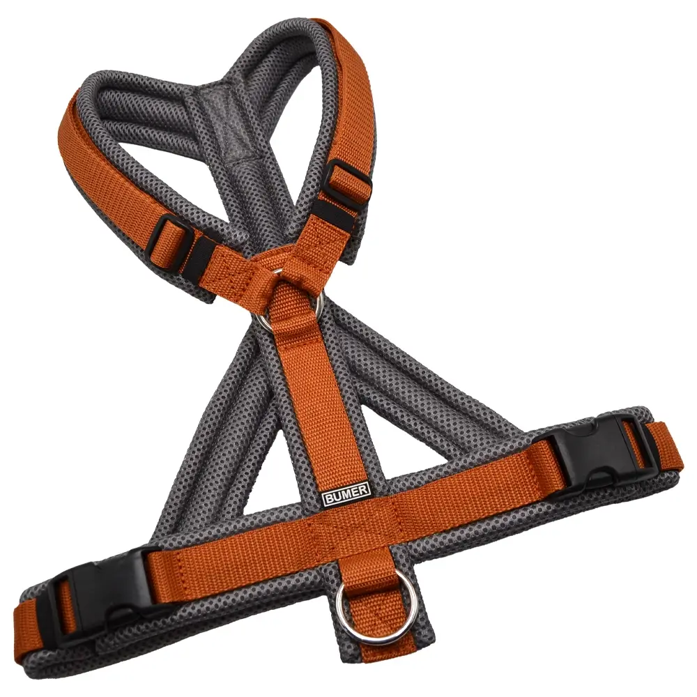 BUMER Hundegeschirr, gepolstert mit geteiltem Bruststeg, Größe L, Gurtband: Hellbraun, MESH: Dunkelgrau, Ringe: silberfarbig (Edelstahl). Dieses Geschirr kannst Du in der Größe L bestellen. Das gepolsterte MESH Material ist schön anschmiegsam, so dass sich Dein Hund sicherlich wohlfühlen wird. Das Hundegeschirr fällt schön weich und ist pflegeleicht und sehr strapazierfähig.