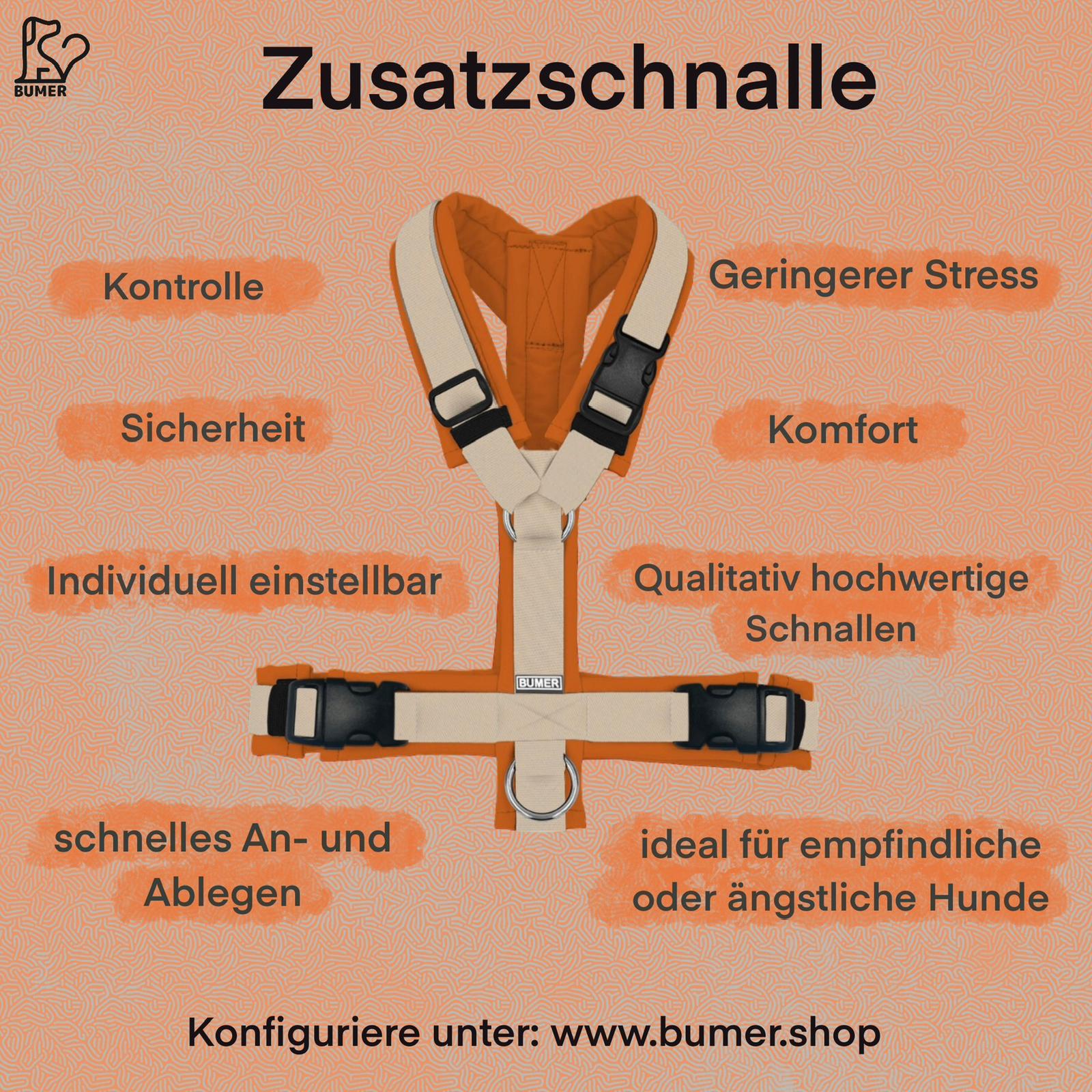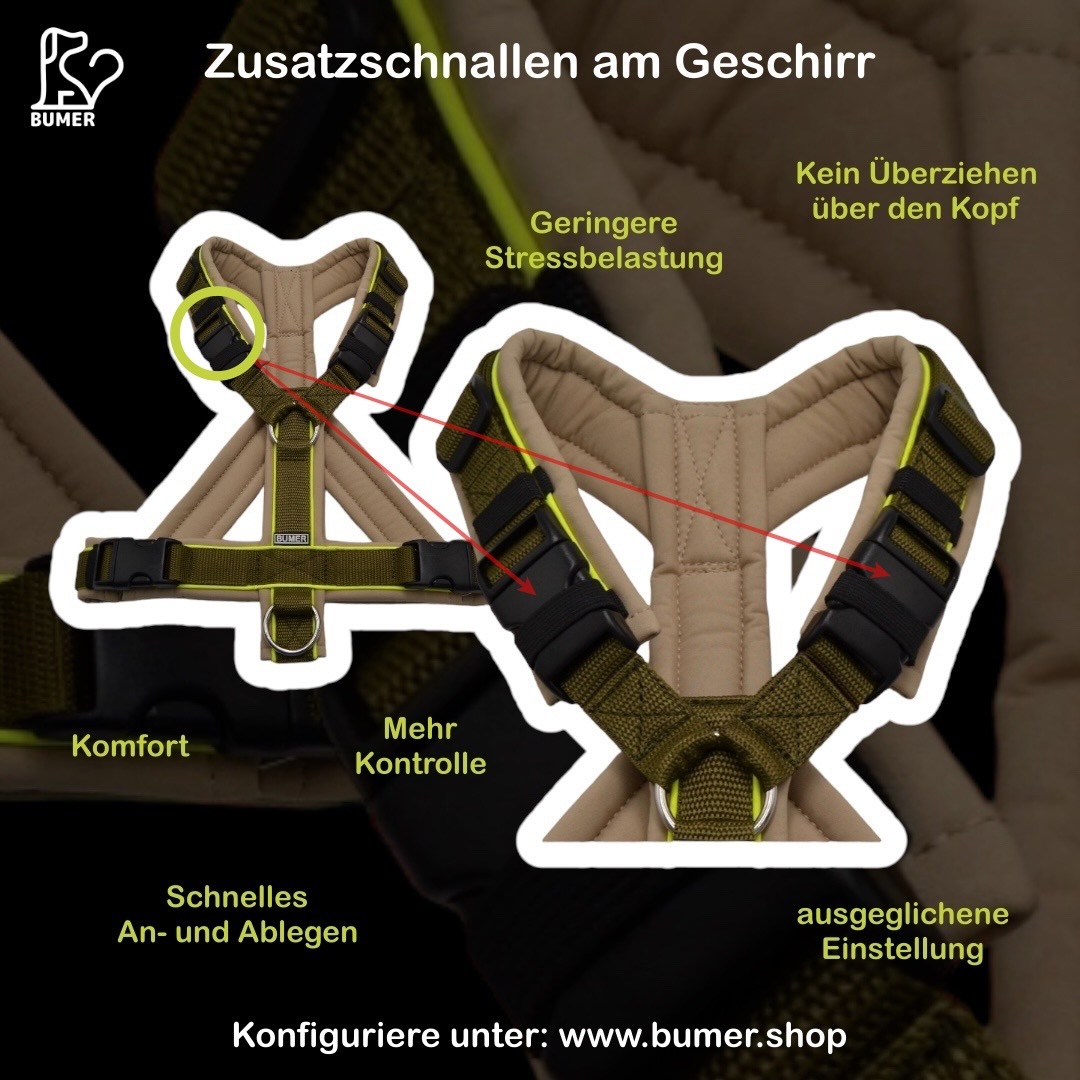 Die hochwertigen Klickverschlüsse ermöglichen ein schnelles An- & Ablegen. Die Verstellbarkeit ist im Brust- und Halsbereich ist gewährleistet.
