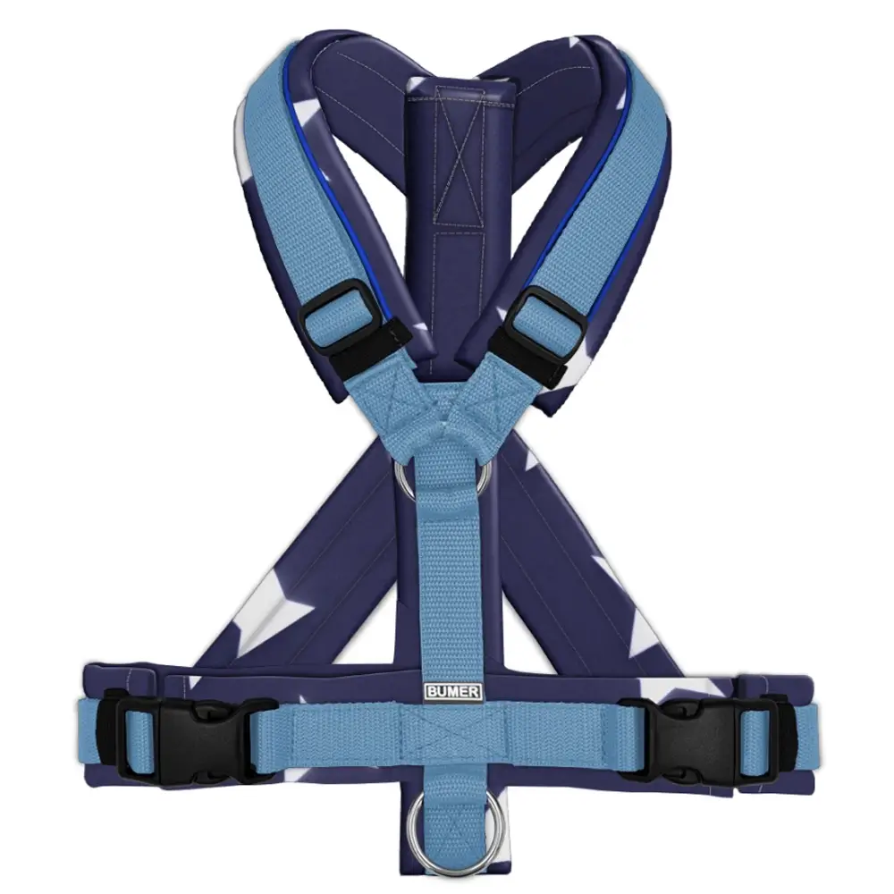 BUMER Hundegeschirr STERN AUF NAVY gepolstert, (Softshell), komplett konfigurierbar. Konfiguriere dieses mit Softshell gepolsterte Hundegeschirr. Das gepolsterte Softshell-Material ist absolut hochwertig, schnell trocknend, isolierend, atmungsaktiv, strapazierfähig und dennoch ein Leichtgewicht.