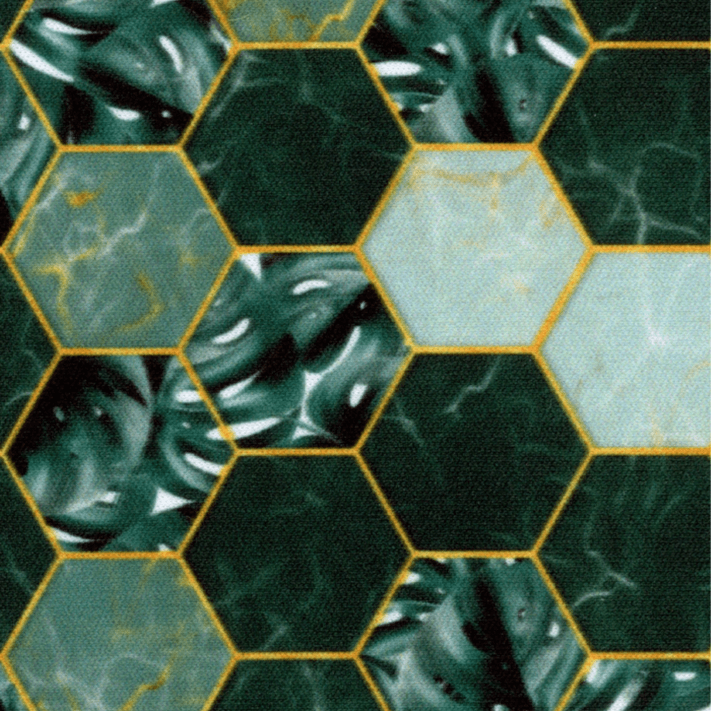 ✅ Modernes Design: Das stilvolle Wabenmuster in Grün und Olive mit goldenen Akzenten macht Deinen Hund zum Hingucker.