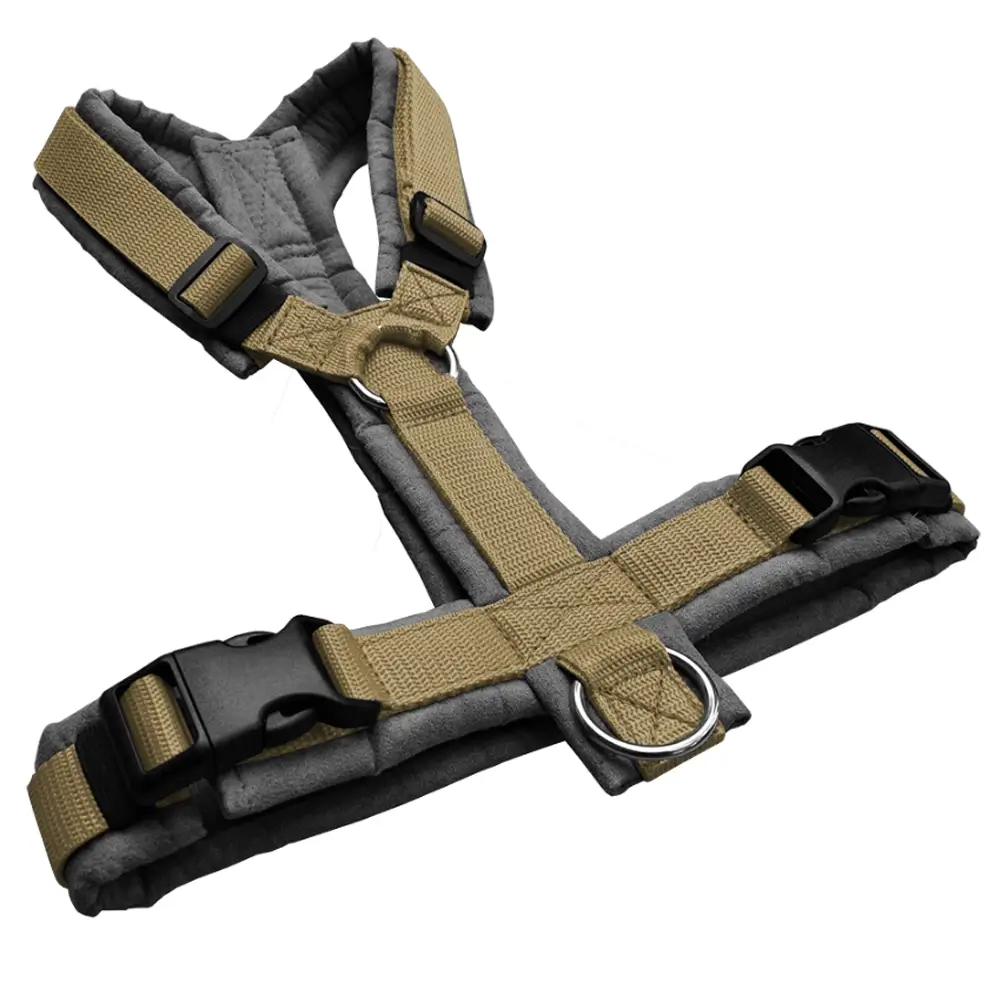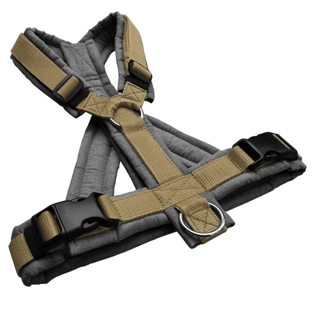 Konfiguriere dieses mit mit Microfaser Wildleder gepolsterte Hundegeschirr. Das gepolsterte Polyester-Material ist absolut hochwertig, Wasser- und Schmutzabweisend, schnell trocknend, isolierend, atmungsaktiv, strapazierfähig und dennoch ein Leichtgewicht. Die Farbe des Microfaser Wildleder-Materials ist aschgrau. Ebenfalls stehen Gurtbandfarben zur Auswahl oder ein stabilisierender Bruststeg.